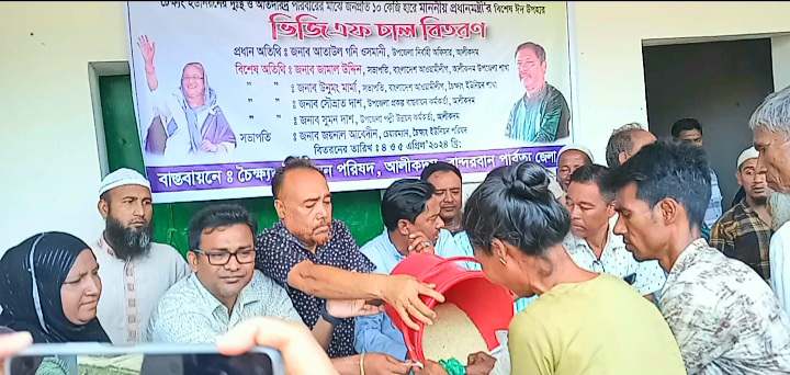এসময় জনপ্রতি ১০কেজি হারে অসহায় দুস্থ ও হতদরিদ্র পরিবারের মাঝে ঈদুল ফিতর উপলক্ষে মাননীয় প্রধানমন্ত্রীর পক্ষ থেকে ভিজিএফ চাউল বিতরণ করা হয়।