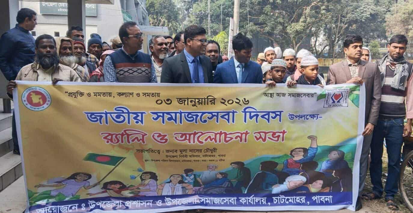 চাটমোহর (পাবনা) সংবাদদাতাঃ “প্রযুক্তি ও মমতায়, কল্যাণ ও সমতায়—আস্থা আজ সমাজসেবায়” প্রতিপাদ্যকে সামনে রেখে পাবনার চাটমোহরে জাতীয় সমাজসেবা দিবস-২০২৬ উদযাপন করা হয়েছে। উপজেলা সমাজসেবা কার্যালয়ের উদ্যোগে এবং উপজেলা প্রশাসনের