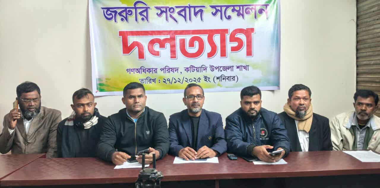 অগণতান্ত্রিক আচরণ, উপজেলা কমিটি বিলুপ্ত ও নেতৃত্বশূন্যতার প্রতিবাদ—সংবাদ সম্মেলনে বিস্ফোরক অভিযোগ সৈয়দ মহসিন : কটিয়াদী (কিশোরগঞ্জ) প্রতিনিধি : কিশোরগঞ্জের কটিয়াদী উপজেলায় গণ অধিকার পরিষদের উপজেলা ও