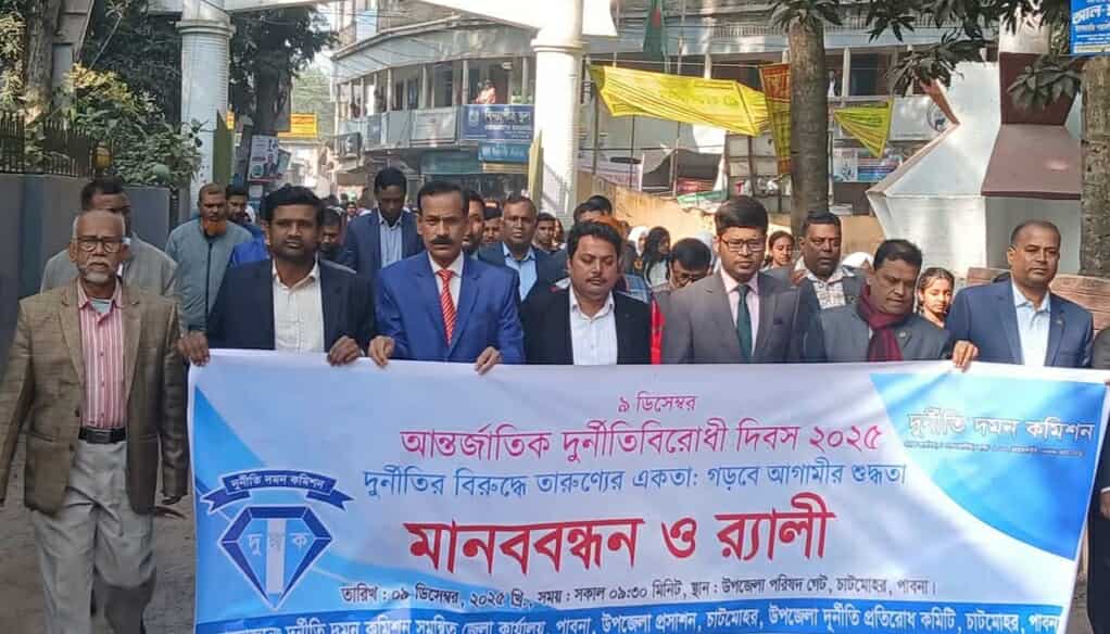 চাটমোহর (পাবনা) সংবাদদাতাঃ পাবনার চাটমোহরে যথাযোগ্য মর্যাদায় আন্তর্জাতিক দুর্নীতি বিরোধী দিবস পালন করা হয়েছে। দিবসটি উপলক্ষে মঙ্গলবার (৯ ডিসেম্বর) সকালে উপজেলা প্রশাসন ও উপজেলা দুর্নীতি প্রতিরোধ কমিটির