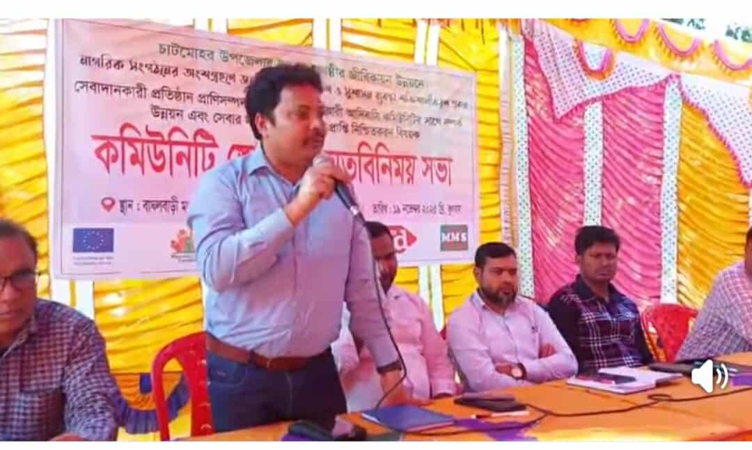 লুৎফর রহমান হীরা (চাটমোহর) পাবনাঃ পাবনার চাটমোহরে ক্ষুদ্র নৃ-গোষ্ঠীর জীবিকায়ন উন্নয়নে সেবাদানকারী প্রতিষ্ঠান ও সেবাগ্রহণকারী কমিউনিটির পারস্পরিক সম্পর্ক সুদৃঢ়করণ, সেবার মানোন্নয়ন এবং সেবাপ্রাপ্তি নিশ্চিতকরণ বিষয়ক কমিউনিটি স্কোরকার্ড মতবিনিময়