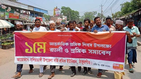 রুবেল রানা, স্টাফ রিপোর্টারঃ মহান মে দিবস উপলক্ষে ঠাকুরগাঁওয়ে রেলি সভা ও সমাবেশ অনুষ্ঠিত হয়েছে। এ উপলক্ষে আজ বুধবার সকালে জেলা শহরের বড়মাঠ থেকে জেলা প্রশাসনসহ বিভিন্ন