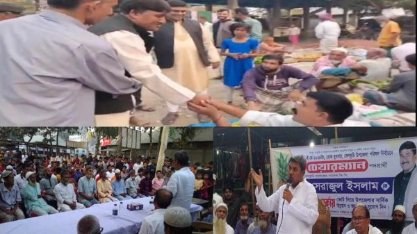 ২৬ এপ্রিল সন্ধ্যায় আসন্ন কালিয়া উপজেলা পরিষদ নির্বাচন উপলক্ষে পুটিমারি বাজারে চার গ্রামের এক উঠান বৈঠক ও মতবিনিময় সভায় বক্তব্য দেন খাশিয়াল ইউনিয়নের সাবেক চেয়ারম্যান ও আওয়ামী লীগের প্রবীণ নেতা