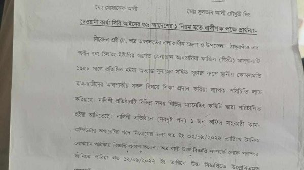 রুবেল রানা, স্টাফা রিপোর্টারঃ আদালতের নির্দেশ অমান্য করে ভেলাজান আনছারিয়া ফাজিল (ডিগ্রি) মাদ্রাসার নিয়োগ পরিক্ষা অনুষ্ঠিত হয়েছে। বেশির ভাগ প্রার্থী প্রবেশপত্র না পেয়ে এই পরিক্ষায় অংশ নিতে পারেনি। এতে