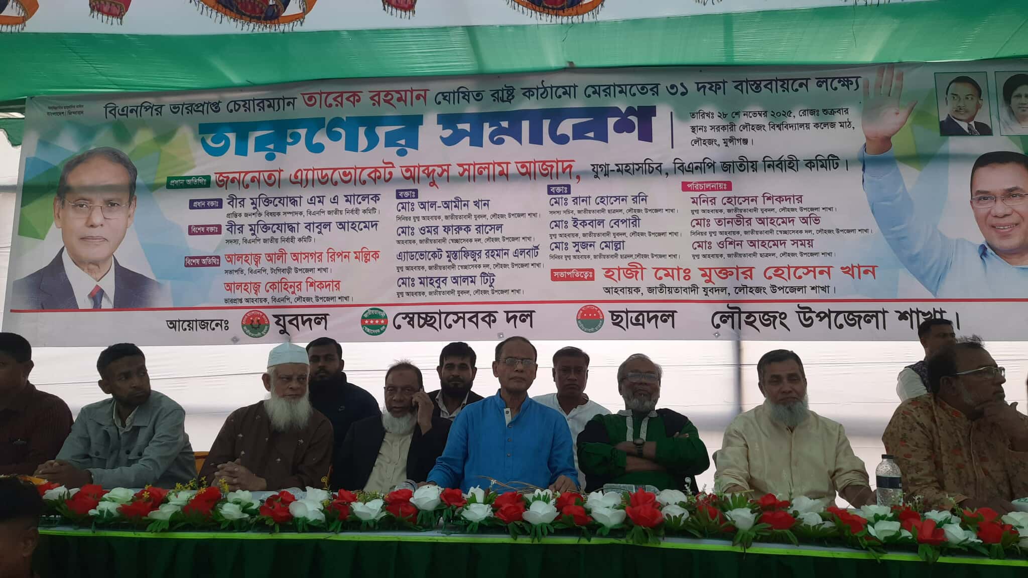 ফৌজি হাসান খান রিকু, স্টাফ রিপোর্টার- বিএনপির ভারপ্রাপ্ত চেয়ারম্যান তারেক রহমান ঘোষিত রাষ্ট্র কাঠামো মেরামতের ৩১ দফা বাস্তবায়নের লক্ষ্যে মুন্সীগঞ্জের লৌহজংয়ে তারুণ্যের সমাবেশ অনুষ্ঠিত হয়েছে৷ শুক্রবার (২৮ নভেম্বর)