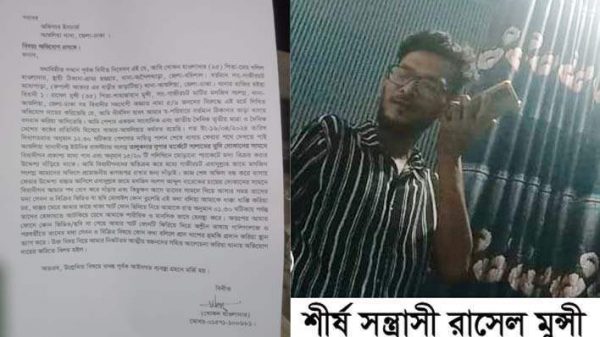 মো সুজন আহমেদ ভ্রাম্যমাণ প্রতিনিধি ঢাকার আশুলিয়ায় শীর্ষ সন্ত্রাসী ও মাদক ব্যবসায়ী রাসেল মুন্সীর নেতৃত্বে তার বাহিনীর হাতে এবার সাংবাদিকরা লাঞ্ছিত হয়েছেন গত মঙ্গলবার দিবাগত (১৭ এপ্রিল) রাত সাড়ে