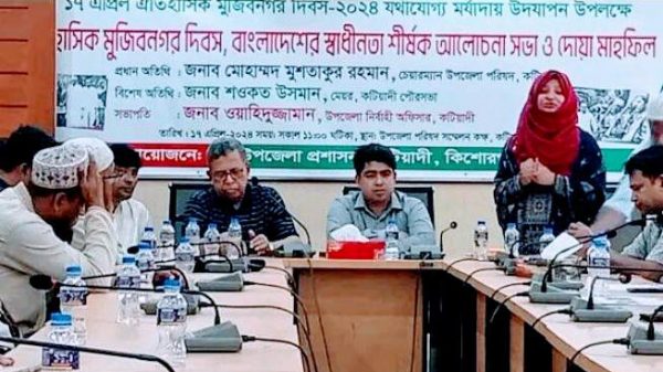 কিশোরগঞ্জ : সৈয়দ আলীউজ্জামাম মহসিন – জেলা প্রতিনিধি কিশোরগঞ্জের কটিয়াদী উপজেলা প্রশাসনের আয়োজনে যথাযোগ্য মর্যাদায় ঐতিহাসিক মুজিবনগর দিবস উদযাপন করা হয়েছে। ১৭ই এপ্রিল(বুধবার) সকাল ১১টার দিকে উপজেলা হলরুমে উপজেলা