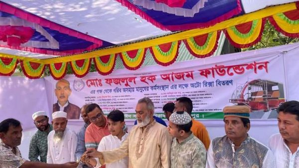 হোসাইন মাহমুদ স্টাফ রিপোর্টার মাদারীপুরে মোঃ ফজলুল হক আজম ফাউন্ডেশন এর উদ্যোগে গরীব অসহায় মানুষের কর্মসংস্থানের লক্ষে ২ টি অটো রিক্সা বিতরণ করা হয়েছে। সোমবার দুপুরে উক্ত সংগঠনের সভাপতি