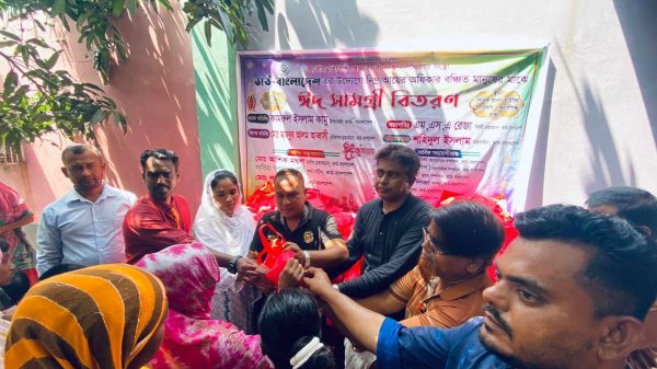 স্টাফ রিপোর্টার: ঈদুল ফিতর উপলক্ষে প্রতি বছরের ন্যায় এবারও জাতীয় ভিত্তিক সেচ্ছাসেবী ও মানবাধিকার সংস্থা ভার্ড-বাংলাদেশ এর উদ্যোগে অসহায়, দুস্থ,অধিকার বঞ্চিত ৩৫০ পরিবারের মাঝে ঈদ সামগ্রী বিতরণ করা