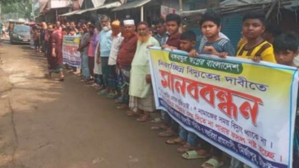 স্টাফ রিপোর্টারঃ খান শাকিল টাঙ্গাইলের মির্জাপুরে সীমাহীন তীব্র ঘন ঘন লোডশেডিং বন্ধের দাবিতে মানববন্ধন করেছেন পল্লী বিদ্যুৎ গ্রাহকেরা। শনিবার (০৬ এপ্রিল) সকাল ১০টার সময় উপজেলার বহুরিয়া বাজারে পল্লী বিদ্যুৎ গ্রাহক