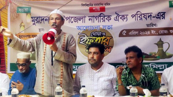 সাখাওয়াত হোসেন (তুহিন) মুরাদনগর (কুমিল্লা) প্রতিনিধি : কুমিল্লার মুরাদনগর উপজেলাশ নাগরিক ঐক্য পরিষদের আলোচনা সভা, দোয়া ও ইফতার মহফিল অনুষ্ঠিত হয়েছে। শুক্রবার সন্ধ্যায় মুরাদনগর সদর ইউনিয়নের সাবেক চেয়ারম্যান