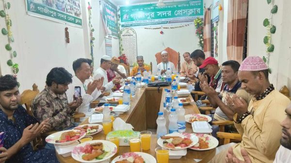নিজস্ব প্রতিবেদক:: গাজীপুর সদর প্রেসক্লাবের আয়োজনে ইফতার ও দোয়া মাহফিল অনুষ্ঠিত হয়েছে। শুক্রবার (৫ এপ্রিল) গাজীপুর সদর প্রেসক্লাব কার্যালয়ে এই ইফতার ও দোয়া অনুষ্ঠিত হয়। গাজীপুর সদর প্রেসক্লাবের