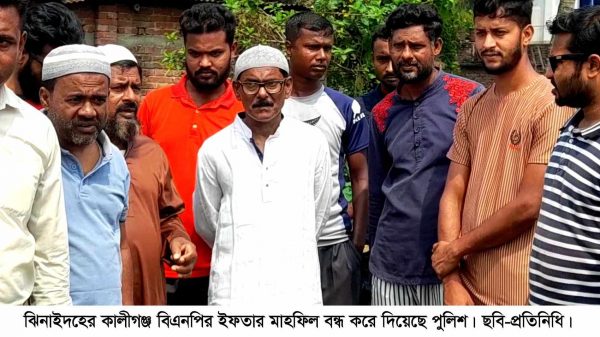 মোঃ মাসুদ রানা,ঝিনাইদহ প্রতিনিধি: ঝিনাইদহের কালীগঞ্জ উপজেলা বিএনপির ইফতার মাহফিল বন্ধ করে দিয়েছে পুলিশ। শনিবার উপজেলা শহরের নলডাঙ্গা সড়কে বিএনপি এ মাহফিলের নির্ধারিত দিন ছিল। ইফতার মাহফিল সফল করতে