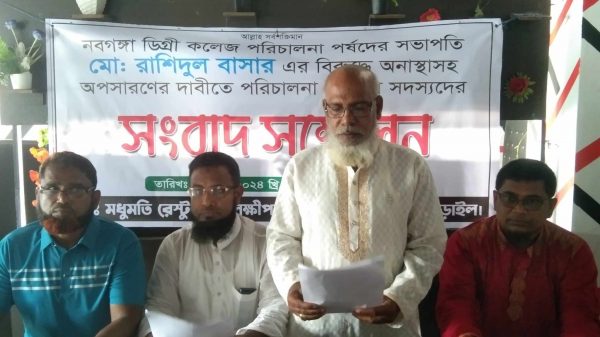 স্টাফ রিপোর্টার: নড়াইলের লোহাগড়া উপজেলার ঐতিহ্যবাহী নবগঙ্গা ডিগ্রী কলেজের পরিচালনা পর্ষদের সভাপতি মোঃ রাশিদুল বাসারের বিরুদ্ধে অনিয়ম ও দুর্নীতির কথা তুলে ধরে বিভিন্ন দপ্তরে লিখিত দরখাস্তে অনাস্থাসহ অপসারণের
