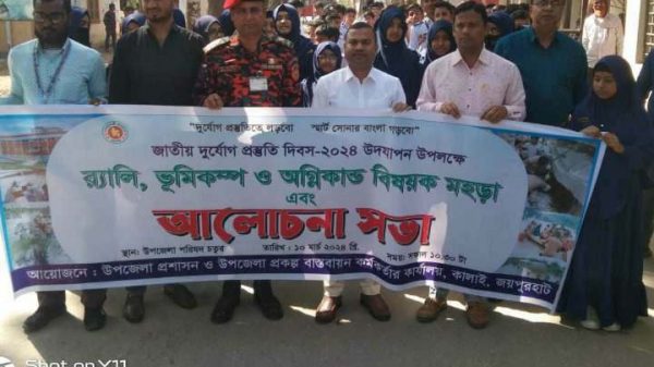মুনছুর রহমান- কালাই (জয়পুরহাট) প্রতিনিধিঃ দুর্যোগ প্রস্তুতিতে লড়বো’ স্মার্ট সোনার বাংলা গড়বো” এই প্রতিপাদ্যকে সামনে রেখে জয়পুরহাটের কালাইয়ে জাতীয় দুর্যোগ প্রশমন দিবস পালিত হয়েছে। রোববার (১০ মার্চ) সকাল ১০