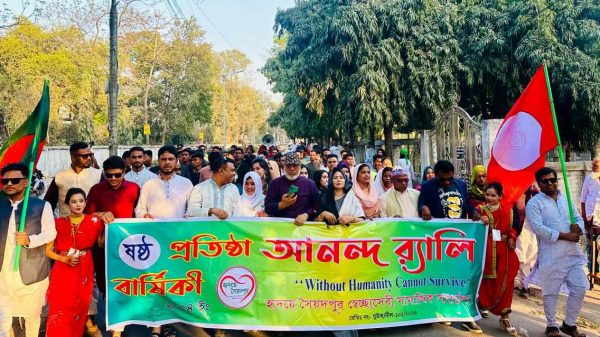 মোঃ শেখ সাদি, স্টাফ রিপোর্টারঃ নানা কর্মসূচির মধ্যদিয়ে নীলফামারীর সৈয়দপুরে “হৃদয়ে সৈয়দপুর” স্বেচ্ছাসেবী সামাজিক সংগঠনের ষষ্ঠ প্রতিষ্ঠাবার্ষিকী উদযাপন করা হয়েছে। গত ৮ মার্চ (শুক্রবার) প্রতিষ্ঠাবার্ষিকীর কর্মসূচির মধ্যে ছিল আনন্দ
