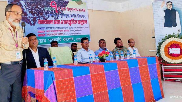 প্রতিনিধি আবু কাউসার :- পরশুরাম সরকারি কলেজে আজ ঐতিহাসিক ৭ মার্চ উদযাপণ উপলক্ষে কলেজের বিজ্ঞান ভবনের ৩য় তলায় বঙ্গবন্ধু ও মুক্তিযুদ্ধের কর্ণার উদ্বোধন এবং আলোচনা সভা ও সাংস্কৃতিক অনুষ্ঠানের
