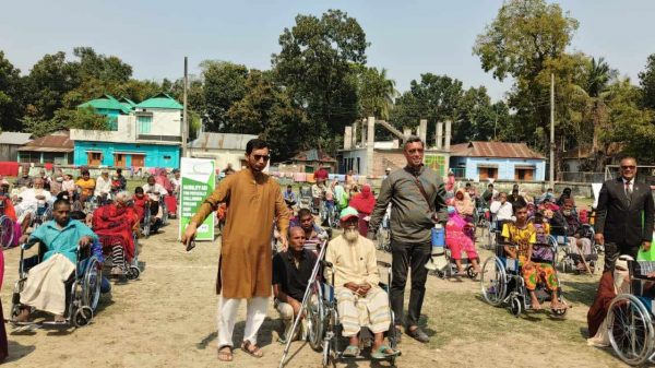 মোঃ শহিদুল ইসলাম খান সিরাজগঞ্জ প্রতিনিধি ঃ সিরাজগঞ্জে শারীরিক প্রতিবন্ধীদের মাঝে ১১৫ টি হুইলচেয়ার এবং ১১ টি টাইসাইকেল বিতরণ করা হয়। জার্মানী মুসলিম হেলফেন এর অর্থায়নে এবং বাংলাদেশ সোশ্যাল