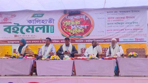 মোঃ মিজানুর রহমান শামীম ।।টাংগাইলের কালিহাতীতে ৩ দিনব্যাপী ২৫ তম টাংগাইল বইমেলা আলোচনা সভা ও পুরস্কার বিতরণী অনুষ্ঠিত হয়েছে । একুশে জাগুক প্রানে,মাতৃভাষায় হোক জীবনের বিকাশ এই প্রতিপাদ্যকে সামনে