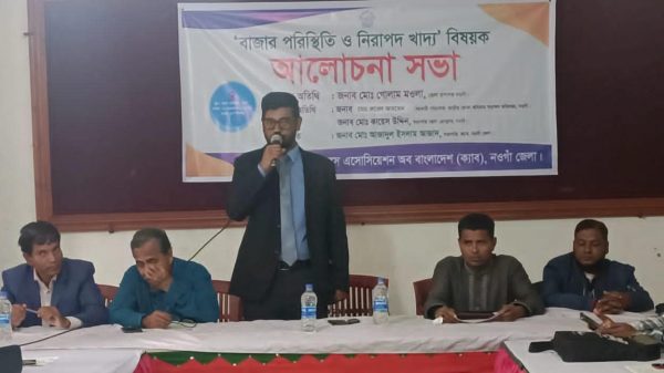 নওগাঁ জেলা প্রতিনিধিঃএস এ উজ্জ্বল, বাজার পরিস্থিতি ও নিরাপদ খাদ্য, বিষয়ক আলোচনা সভা অনুষ্ঠিত হয়েছে। আজ বৃহস্পতিবার সকাল সাড়ে ১০টায় কনজুমারস এসোসিয়েশন অব বাংলাদেশ (ক্যাব) নওগাঁ শাখা এর আয়োজনে,