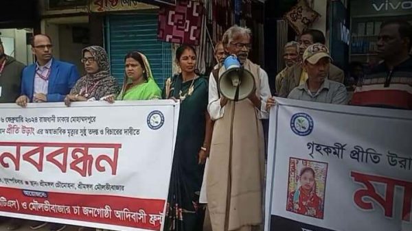 আফজল হোসেইন(শ্রীমঙ্গল প্রতিনিধি) শ্রীমঙ্গল,১৫ফেব্রুয়ারি ২০২৪ :রাজধানীর মোহাম্মদপুরের শাহজাহান রোডে কিশোরী গৃহকর্মী প্রীতি ওরাং-এর অস্বাভাবিক মৃত্যু রহস্য উদঘাটনে দ্রুত তদন্ত ও বিচারের দাবিতে শ্রীমঙ্গলে মানববন্ধন করেছে ব্রেকিং দ্য