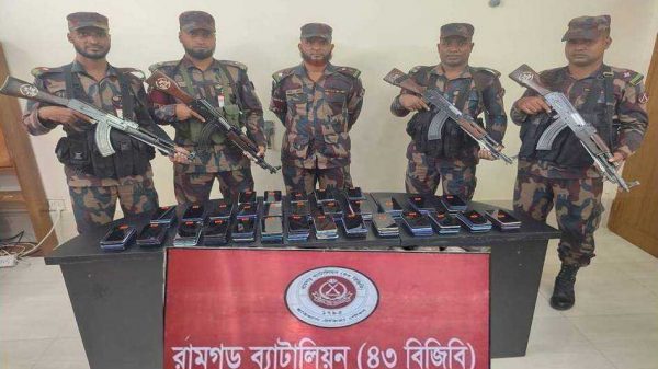মোঃমাসুদ রানা, রামগড়(খাগড়াছড়ি)প্রতিনিধিঃ খাগড়াছড়ির রামগড় পৌরসভার বল্টুরাম এলাকা থেকে ভারতীয় বিপুল পরিমাণ মোবাইল ফোন জব্দ করেছে রামগড় ৪৩ বিজিবি। গতকাল রবিবার রাতে রামগড় ৪৩ বিজিবির আওতায় রামগড় বিওপিতে