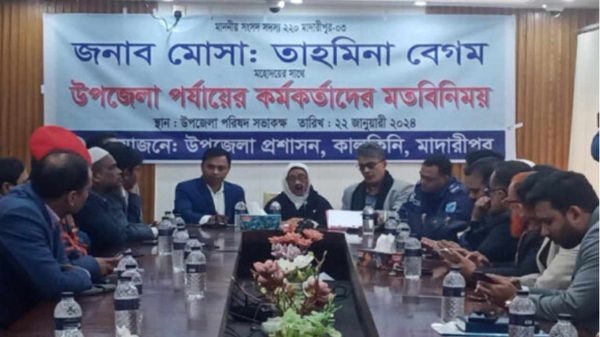 মাসুদ হোসেন খান : সদ্য অনুষ্ঠিতব্য দ্বাদশ জাতীয় সংসদ নির্বাচনে মাদারীপুর-৩ আসনের নব নির্বাচিত সংসদ সদস্য তাহমিনা বেগমের সাথে কালকিনি উপজেলা প্রশাসনের কর্মকর্তাদের সাথে পরিচিতি ও মতবিনিময় সভা