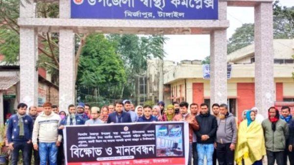 স্টাফ রিপোর্টারঃখান শাকিল সিলেটের জৈন্তাপুর উপজেলা স্বাস্থ্য কমপ্লেক্সের কর্তব্যরত চিকিৎসকের উপর দুর্বৃত্তদের হামলা ও সরকারি সম্পদ বিনষ্টের প্রতিবাদে বিক্ষোভ ও মানববন্ধন করেছে টাঙ্গাইল জেলার মির্জাপুর উপজেলা স্বাস্থ্য কমপ্লেক্সের