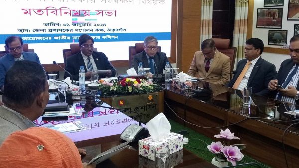 রুবেল রানা, স্টাফ রিপোর্টারঃ আসন্ন দ্বাদশ জাতীয় সংসদ নির্বাচনকে কেন্দ্র করে ঠাকুরগাঁও জেলার নির্বাচনকালীন মানবাধিকার সংরক্ষণ বিষয়ক মতবিনিময় সভা অনুষ্ঠিত হয়েছে। সোমবার (১লা জানুয়ারি) সকালে ঠাকুরগাঁও জেলা প্রশাসকের