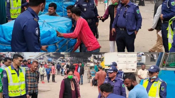স্টাফ রিপোর্টার। গাজীপুর জেলা শ্রীপুর উপজেলার ঢাকা মায়মনসিংহ মহাসড়কের মাওনা উড়াল সেতুর নিচে অবৈধ স্থাপনা ও ফুটপাত নিরসনে অভিযান পরিচালনা করছেন মাওনা ও হাইওয়ে থানার পুলিশ সদস্যরা।
