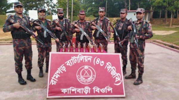 মোঃমাসুদ রানা, রামগড়(খাগড়াছড়ি)প্রতিনিধি খাগড়াছড়ির রামগড় খেদাব্রীজ এলাকা থেকে ভারতীয় মদ জব্দ করেছে রামগড় ৪৩ বিজিবি। সোমবার (৪ ডিসেম্বর ) সকালে রামগড় ৪৩ বিজিবির আওতায় কাঁশীবাড়ি বিওপিতে কর্মরত হাবিলদার
