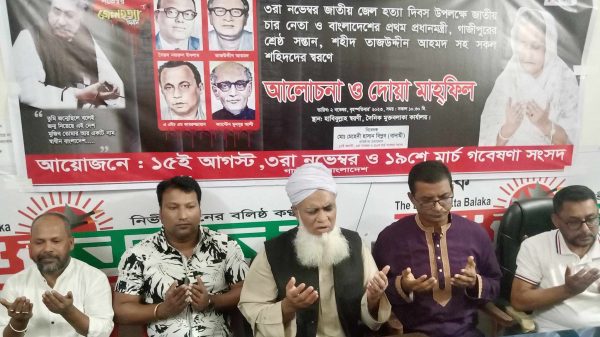 মোঃ হাইউল খান গাজীপুর জেলা প্রতিনিধি ৩রা নভেম্বর জেল হত্যা দিবস উপলক্ষে ১৫ই আগস্ট, ৩রা নভেম্বর ও১৯শে মার্চ গবেষণা সংসদ আয়োজিত আলোচনা সভা ও দোয়া মাহফিল অনুষ্ঠিত হয়েছে। বৃহস্পতিবার (২রা