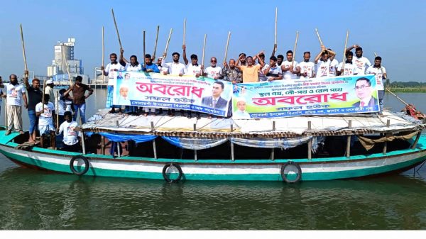 শাহারুখ আহমেদঃ নারায়ণগঞ্জের সোনারগাঁয়ের মেঘনা নদীতে নৌপথ অবরোধ করেছে নারায়ণগঞ্জ জেলা যুবদলের নেতাকর্মীরা। গতকাল বৃহস্পতিবার সকালে সোনারগাঁয়ের বারদী ও আনন্দবাজার এলাকায় মেঘনা নদীতে একটি ট্রলারে চড়ে জেলা যুবদলের নেতাকর্মীরা