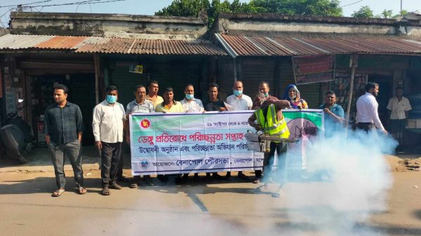 কামাল হোসেন, বেনাপোল প্রতিনিধিঃ বৃহস্পতিবার (২ নভেম্বর) সকাল ১০ টার সময় ডেঙ্গু প্রতিরোধে পরিচ্ছন্ন সপ্তাহ ২০২৩ উপলক্ষে বেনাপোল পৌর মেয়র আলহাজ্ব নাসির উদ্দিনের নির্দেশে কাগজপুকুর ৪ নং ওয়ার্ডের বিভিন্ন