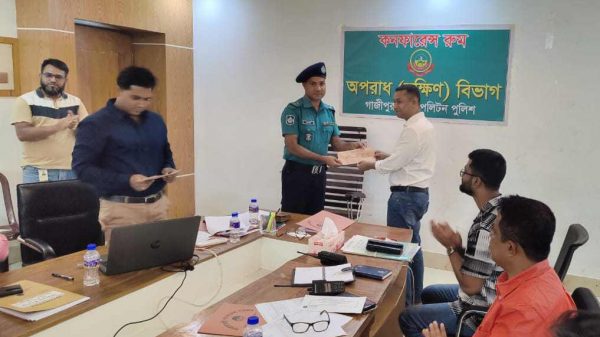 মোঃ লিয়াকত হোসাইন,স্টাফ রিপোর্টার গাজীপুর মেট্রোপলিটন অপরাধ দক্ষিণ বিভাগের মাসিক পর্যালোচনা সভায় শ্রেষ্ঠ অফিসার হিসাবে পুরস্কার পেলেন পুবাইল থানার চৌকস পুলিশ অফিসার এস আই মোঃ হুমায়ুন কবির।