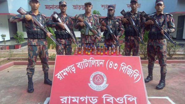 মোঃমাসুদ রানা, রামগড়(খাগড়াছড়ি)প্রতিনিধিঃ খাগড়াছড়ির রামগড় পৌরসভার অফিস টিলা এলাকা থেকে ভারতীয় মদ করেছে রামগড় ৪৩ বিজিবি। মঙ্গলবার দুপুরে রামগড় ৪৩ বিজিবির আওতায় রামগড় বিওপিতে কর্মরত নায়েব সুবেদার মোঃ