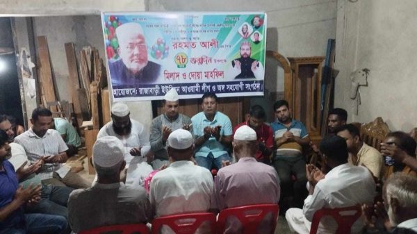 নাঈম। আওয়ামীলীগের উপদেষ্টা মন্ডলির সদস্য ও সাবেক এল.জি.আর.ডি প্রতিমন্ত্রী মরহুম এডভোকেট রহমত আলীর ৭৮তম জন্মদিন উপলক্ষে মিলাদ ও দোয়া মাহফিল অনুষ্ঠিত হয়েছে। ১৬ সেপ্টেম্বর বিকেল ৪ টায় ধলাদিয়া