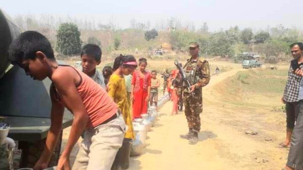 জমির উদ্দিন, বিশেষ প্রতিনিধিঃ বান্দরবানের আলীকদমে সেনাবাহিনীর (৩১ বীর) সেনাজোনের উদ্যোগে পানিশূন্য এলাকায় ভোক্তভোগী জনসাধারণের মাঝে বিশুদ্ধ খাবার পানি সরবরাহ করছে সেনাবাহিনীর সদস্যরা। এসময় সেনাবাহিনীর গাড়ীতে করে