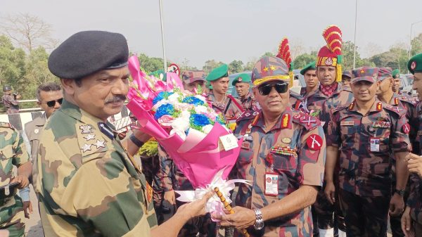 মোঃমাসুদ রানা, রামগড়(খাগড়াছড়ি) প্রতিনিধি: খাগড়াছড়ির রামগড় সীমান্ত পরিদর্শন ও বিএসএফের সাথে শুভেচ্ছা বিনিময় করেছেন বর্ডার গার্ড বাংলাদেশের (বিজিবি) মহাপরিচালক মেজর জেনারেল এ কে এম নাজমুল হাসান, বিএএম, এনডিসি,