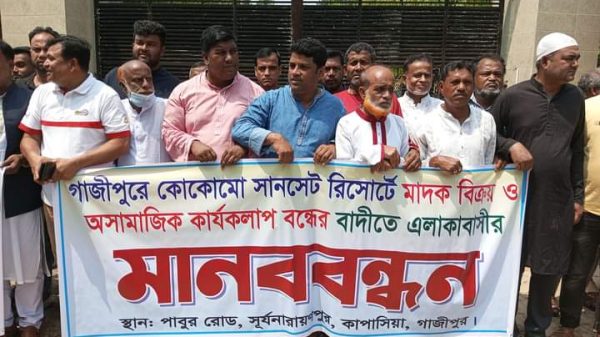 আজ ০৪/০৪/২০২৩ইং সকাল ১০ঘটিকা গাজীপুর জেলা শ্রীপুর উপজেলার রাজাবাড়ি ইউনিয়ন বড়চালা গ্রামে কো কো মো রিসোর্টের সামনে রাজনৈতিক নেতৃবৃন্দ হাজার হাজার জনতার মানববন্ধন। মানব বন্ধনে উপস্থিত