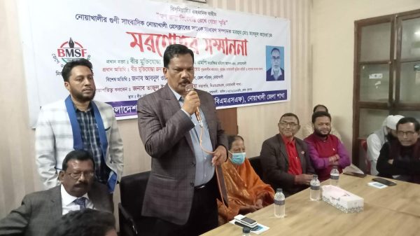 ইয়াছিন শরীফ অনিক, স্টাফ রিপোর্টারঃ বাংলাদেশ মফস্বল সাংবাদিক ফোরাম নোয়াখালী জেলা শাখার আয়োজনে মরহুম সাংবাদিক আবদুল কাদেরকে মরণোত্তর সম্মাননা প্রদান করা হয়েছে। বুধবার সন্ধ্যা ৭ টায় নোয়াখালী প্রেসক্লাবের