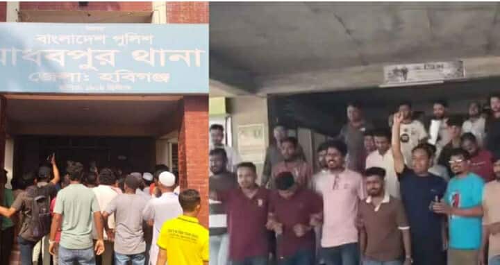 স্টাফ রিপোর্টার: নির্মল ইন্দু সরকার হবিগঞ্জ জেলার মাধবপুর থানা ঘেরাও করেছে একদল বিক্ষুব্ধ জনতা। আজ শনিবার ২৫ অক্টোবর, ২০২৫ দুপুরে একদল জনতা মিছিলসহ মাধবপুর থানা ঘেরাও করে। ঘটনার সূত্রে