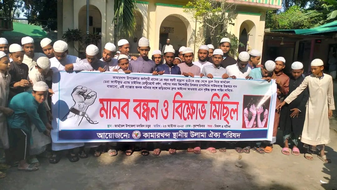 – মোঃ শহিদুল ইসলাম খান সিরাজগঞ্জঃ সিরাজগঞ্জের কামারখন্দ উপজেলায় ১৪ বছরের এক কিশোরীকে ধর্ষণের ঘটনায় অভিযুক্ত ৬ জন আসামির দৃষ্টান্তমূলক শাস্তির দাবিতে বিভিন্ন সামাজিক, রাজনৈতিক ও ধর্মীয় সংগঠনের উদ্যোগে পৃথকভাবে