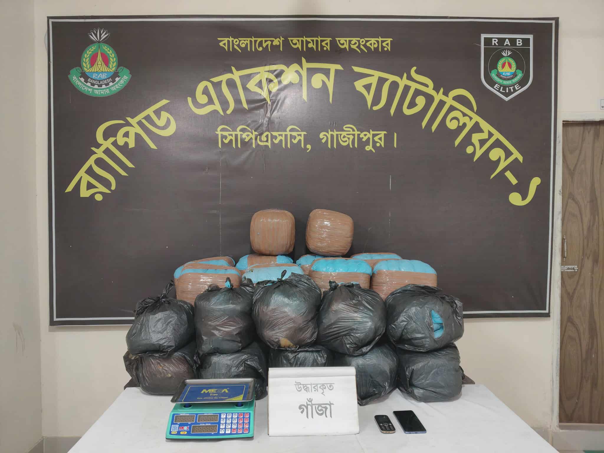 মো. হাইউল উদ্দিন খান,গাজীপুর প্রতিনিধি গাজীপুরে মাদক বিরোধী বিশেষ অভিযানে বড় সাফল্য অর্জন করেছে র্যাব-১। বুধবার(২১ জানুয়ারি) গভীর রাতে পরিচালিত অভিযানে ১১৮ কেজি গাঁজাসহ এক চিহ্নিত