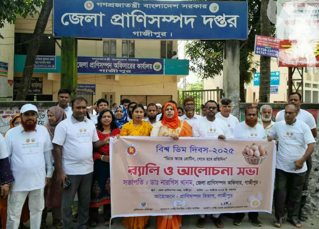 মোঃ হাইইউ উদ্দিন খান, গাজীপুর প্রতিনিধি ডিমে আছে প্রোটিন—খেতে হবে প্রতিদিন” এই প্রতিপাদ্যকে সামনে রেখে সারা দেশের মতো গাজীপুরেও পালিত হয়েছে বিশ্ব ডিম দিবস। রবিবার (১২ অক্টোবর) সকালে গাজীপুর