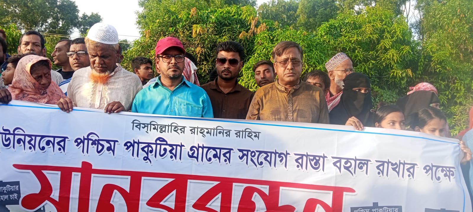 মোঃ আনিসুর রহমান শেলী কালিহাতীর নাগবাড়ী ইউনিয়নে পশ্চিম পাকুটিয়ার জনগন রাস্তার দাবিতে মানব বন্ধন ও আলোচনা সভা অনুষ্ঠিত হয়েছে।পশ্চিম পাকুটিয়ায় চারান ব্রীজ সংলগ্নে ইট ছলিং রাস্তা বন্ধ করে দিয়ে ব্রীজের