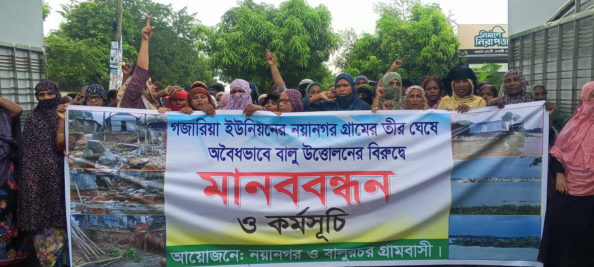 ওসমান গনি স্টাফ রিপোর্টার মুন্সীগঞ্জে গজারিয়া উপজেলা মেঘনা নদীর তীর ঘেঁষে বালু উত্তোলন বন্ধের দাবিতে মানব বন্ধন করেছে স্থানীয়’রা, বিক্ষোভ করে উপজেলা নির্বাহী অফিসার এর কার্য্যলয়ে এসে প্রতিবাদ জানান। গজারিয়া