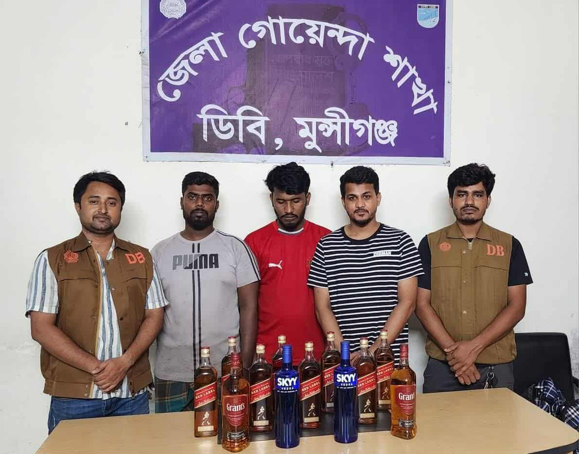 ওসমান গনি স্টাফ রিপোর্টার মুন্সিগঞ্জ সদরের পশ্চিম মুক্তারপুর এলাকা থেকে ১২ বোতল বিদেশী মদসহ ৩ যুবককে আটক করেছে জেলা গোয়েন্দা পুলিশ (ডিবি)। পশ্চিম মুক্তারপুর এলাকায় অভিযান পরিচালনা করে ওই ৩