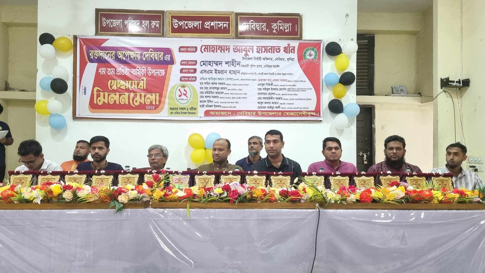 মো: তোফায়েল আহমেদ : রক্তদানের অপেক্ষায় দেবিদ্বার’ সংগঠনের সপ্তম প্রতিষ্ঠাবার্ষিকী উপলক্ষে রক্তদাতা স্বেচ্ছাসেবীদের মিলনমেলা অনুষ্ঠিত হয়েছে। শুক্রবার সকাল ১১টায় উপজেলা পরিষদ হল রুমে আয়োজিত এ অনুষ্ঠানে বিভিন্ন শ্রেণিপেশার মানুষ