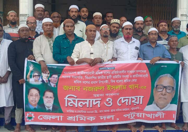 মোঃ গোলাম রাব্বী,স্টাফ রিপোর্টার:- বাংলাদেশ জাতীয়তাবাদী শ্রমিক দলের প্রতিষ্ঠাতাকালিন সাধারন সম্পাদক, সাবেক সভাপতি, বিএনপির স্থায়ী কমিটির সদস্য ও জাতীয়তাবাদী শ্রমিক দলের প্রধান উপদেষ্টা দেশ বরেন্য শ্রমিক নেতা নজরুল ইসলাম